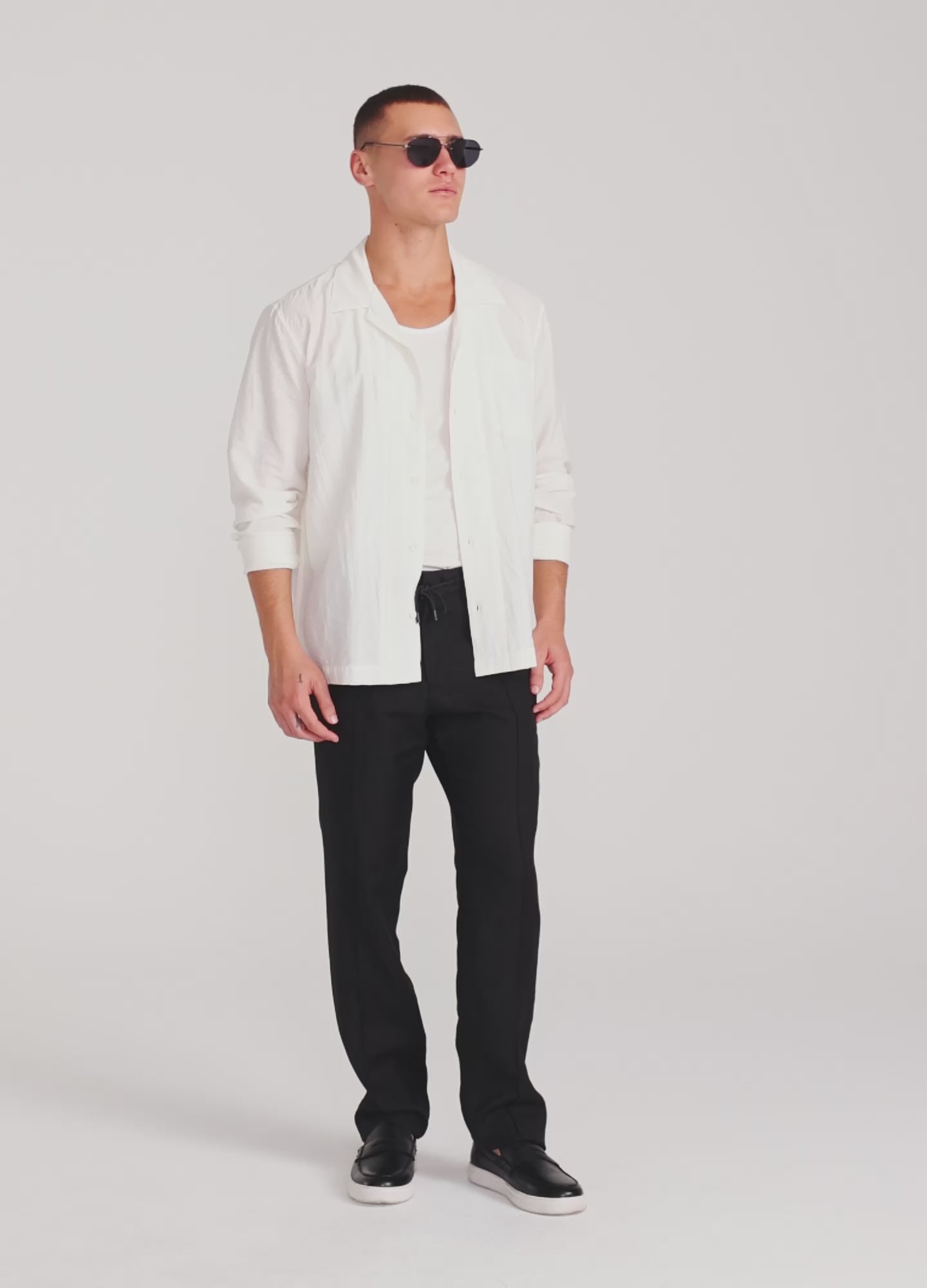 The Crinkled Silk Blend Shirt features an open-neck camp collar and long sleeves, cut for a relaxed fit. A statement piece, it's designed to turn heads on entry.