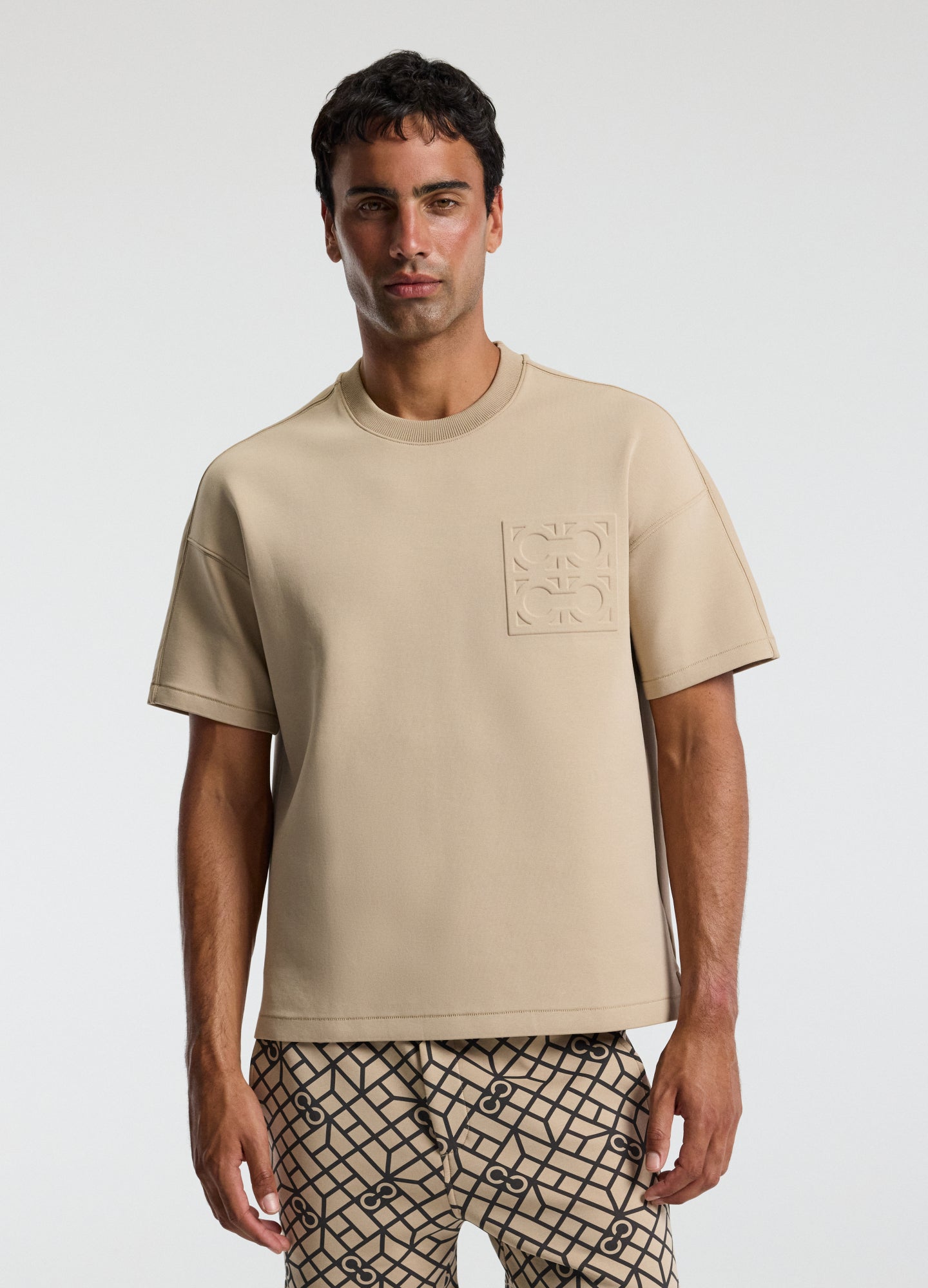 Embossed Logo Short Sleeve Sweat Top Dune