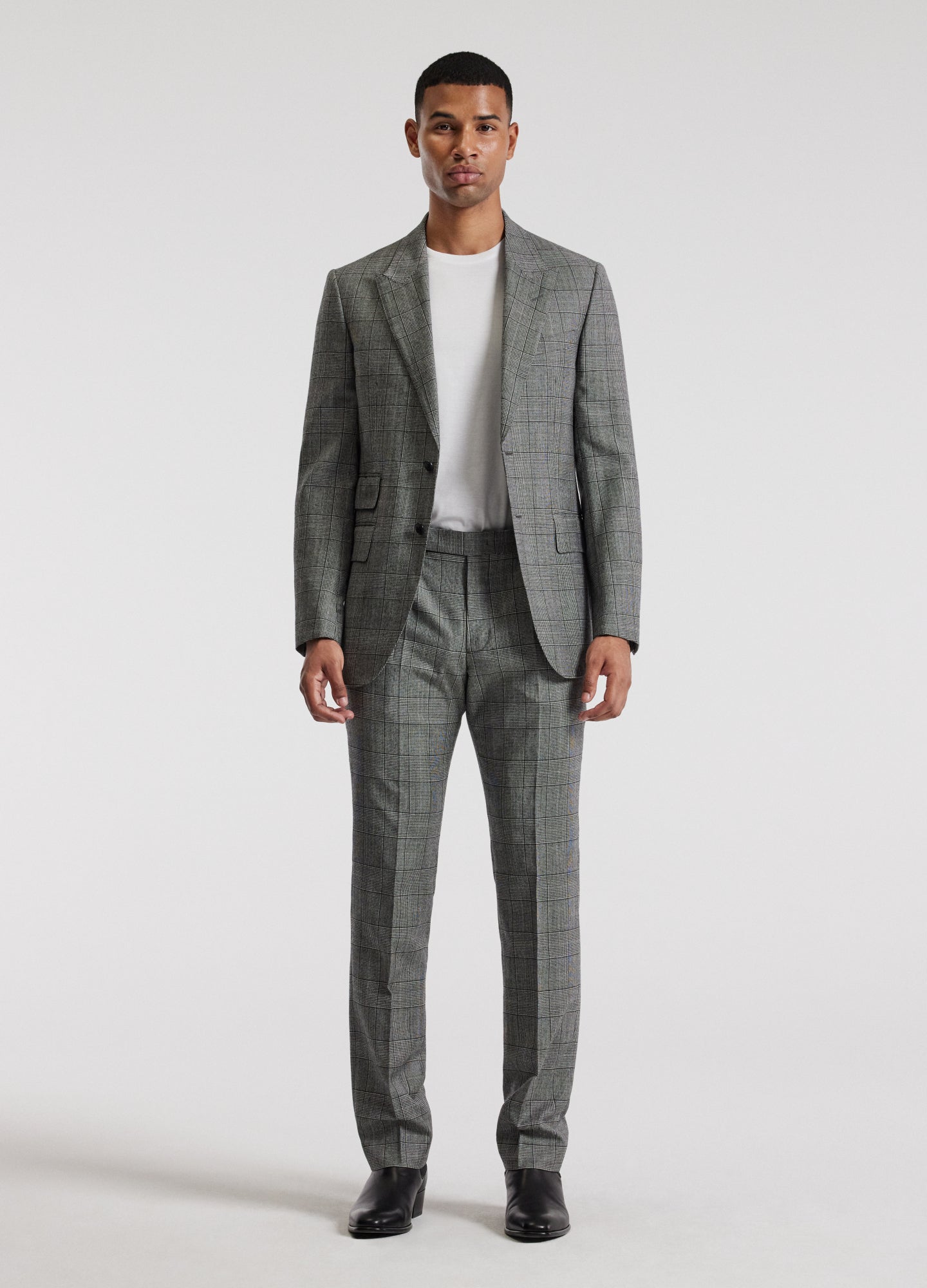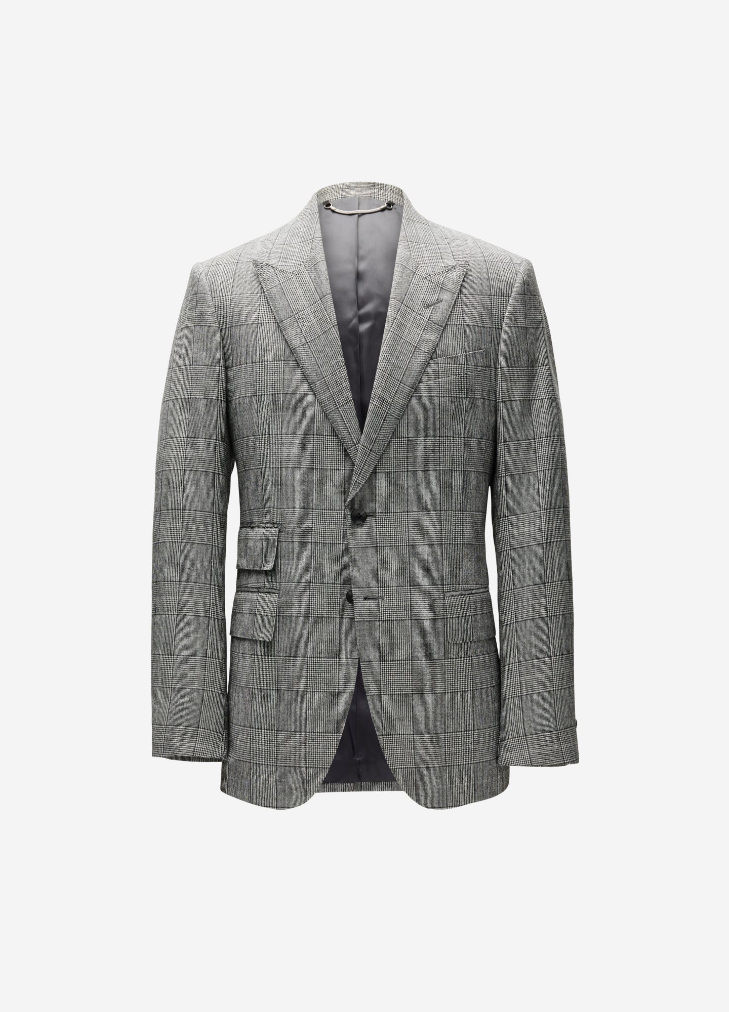 - Checked pure Merino wool fabric with a lightly brushed surface finish