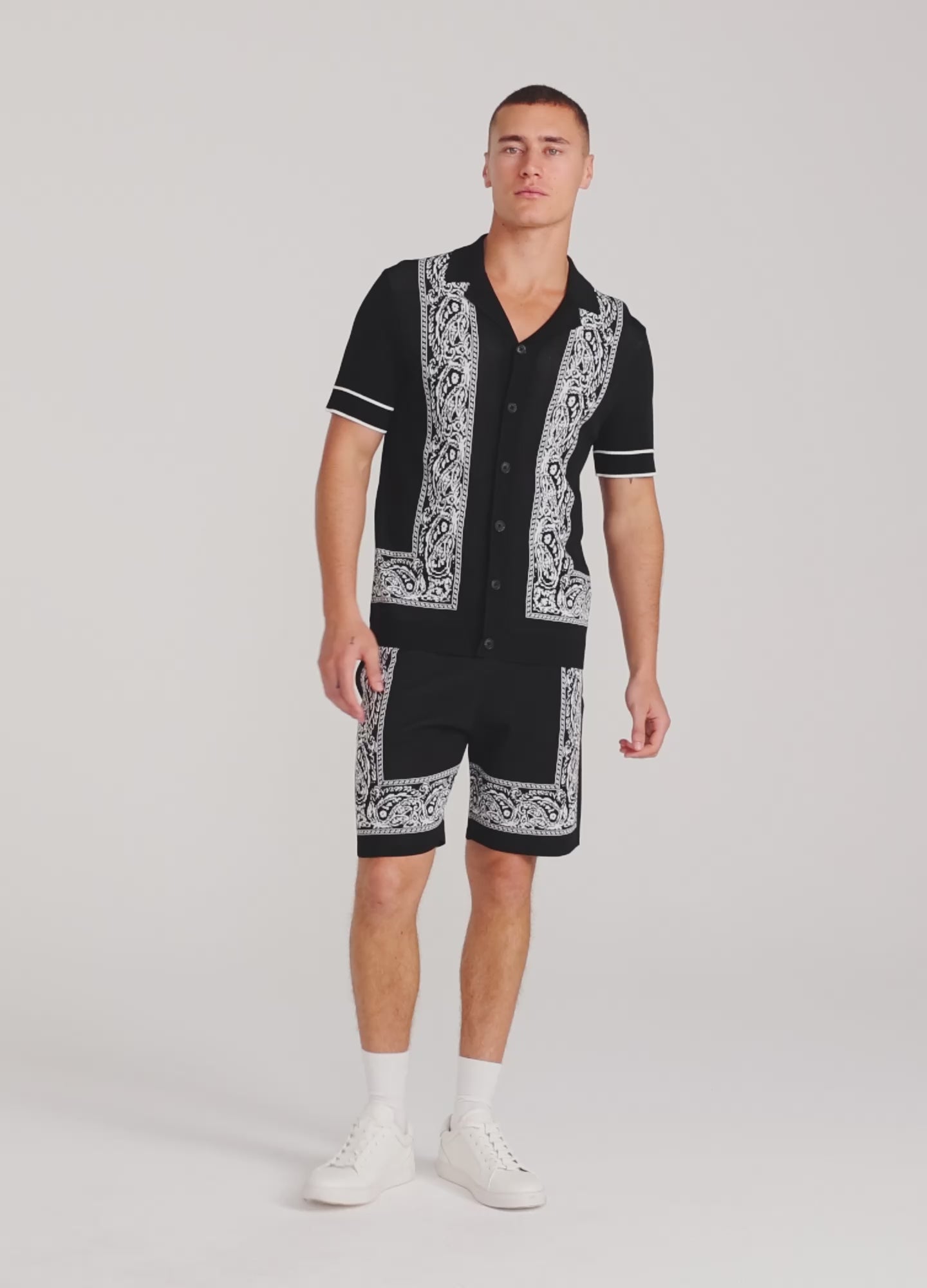 Take your style to new heights with the Graphic Border Knit Shorts. Pair them with the matching shirt for an seamlessly coordinated look that makes choosing your outfit effortless. To mix it up, style it with a classic t-shirt or polo and let the shorts do the heavy lifting.