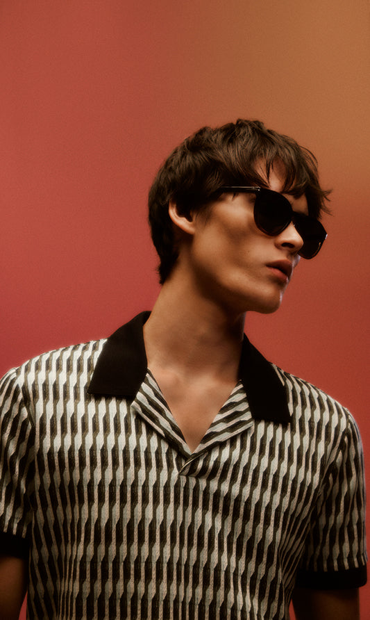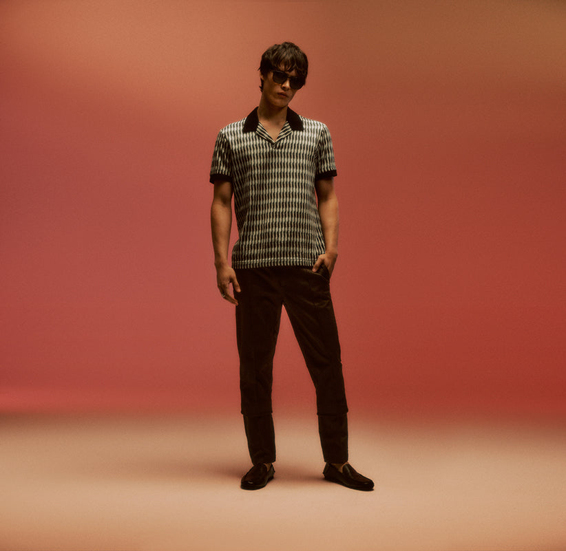 The Linear Jacquard Polo features a modern, geometric pattern and open collar. Crafted with a European Jacquard knit made from Egyptian cotton yarns, this is the perfect partner to denim and navy styles.