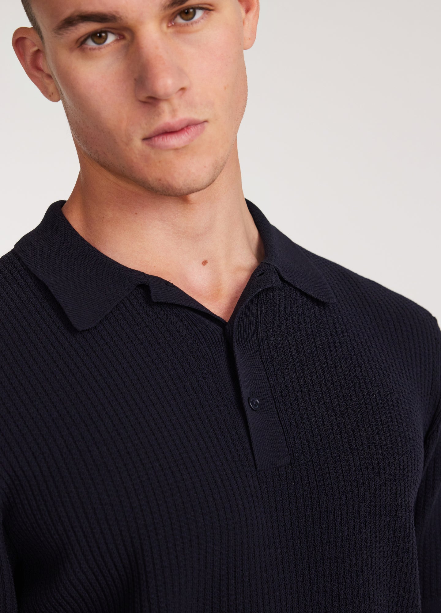 Relaxed Textured Knit Polo Navy