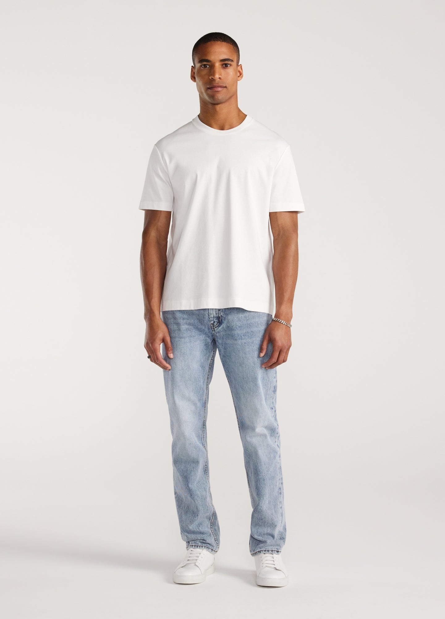 The Straight Leg Denim Jeans are a core wardrobe piece, designed for year-round wear. Crafted from a non-stretch, mid-to-heavy-weight denim fabric, they are cut for a slim fit with a relaxed, and slightly looser leg shape. Designed to be worn with both tailored and casual items, they pair back effortlessly with a relaxed fit t-shirts and knitwear.