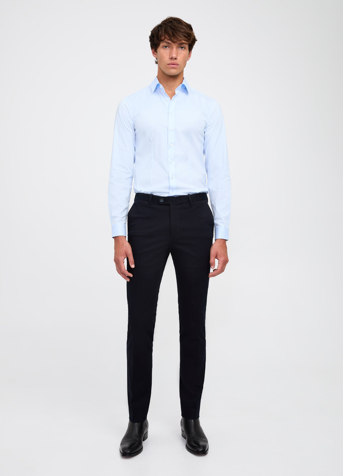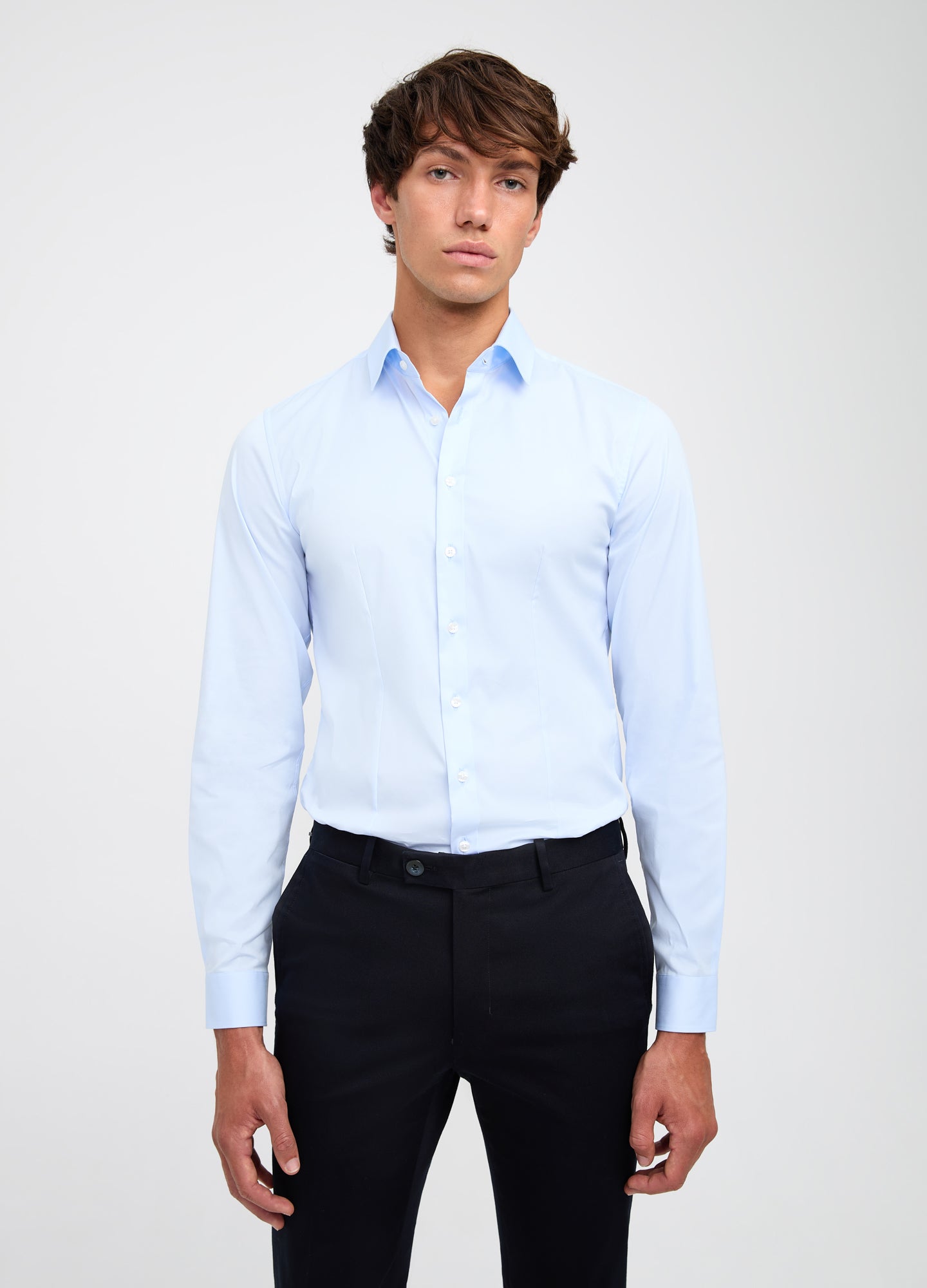 - Pointed collar with fixed bones (can be worn open or with a tie)
