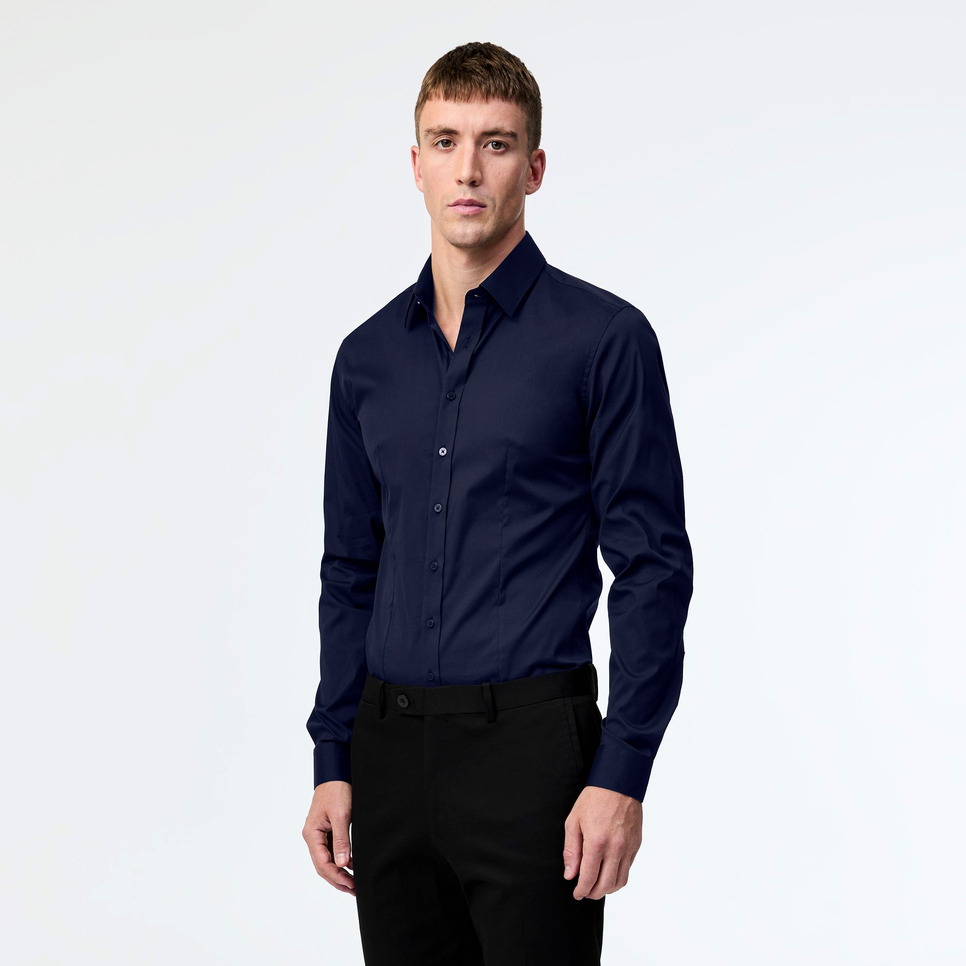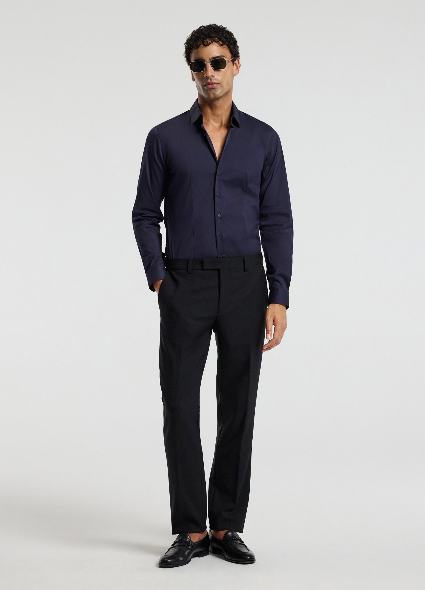 - Pointed collar with fixed bones (can be worn open or with a tie)