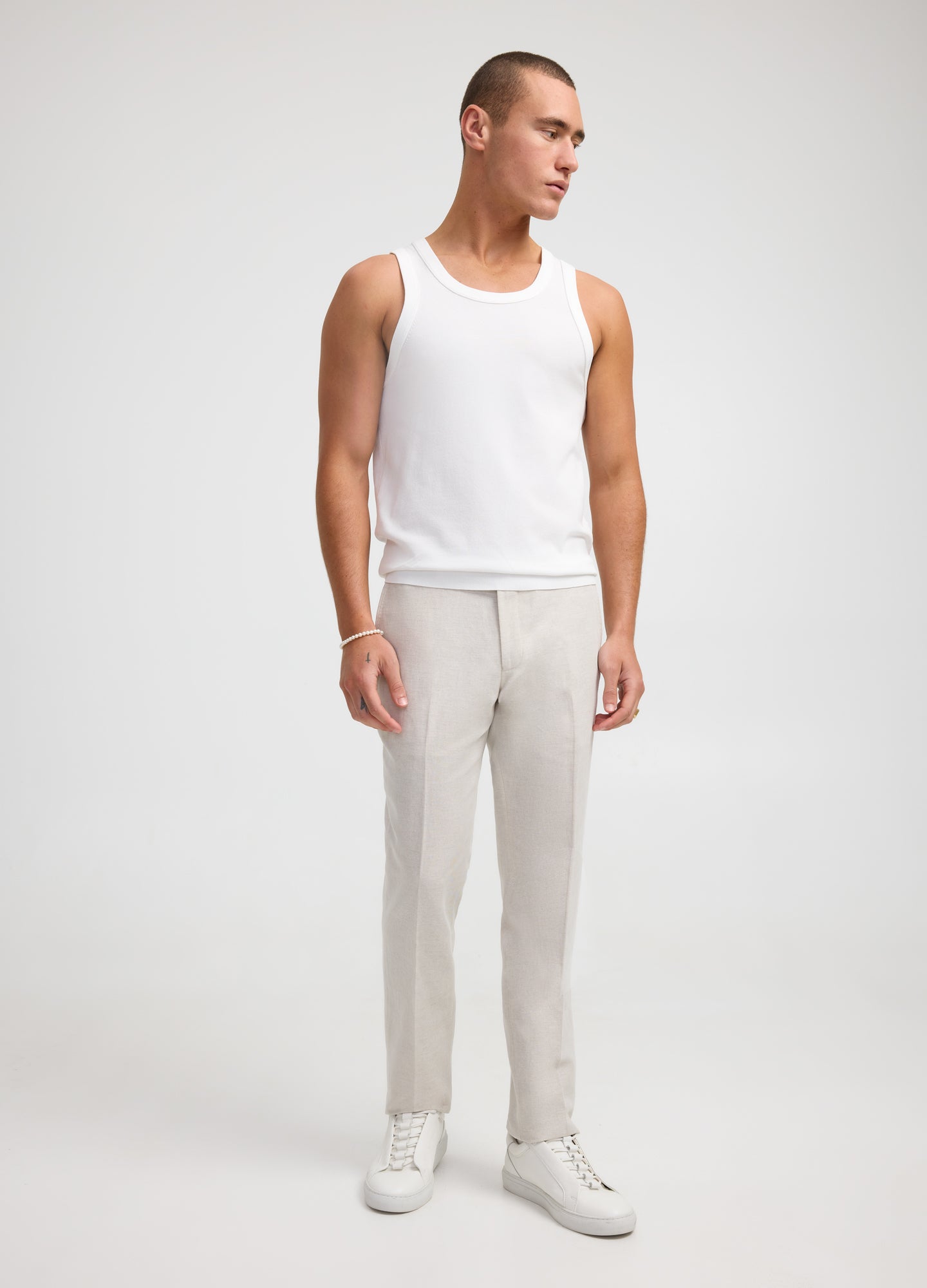 It's tank season. This summer, it's time to bare some skin and there is no better way to do that than the Tech Knitted Tank. Unlike others, this tank is made from CALIBRE's signature tech yarn, known for its luxurious softness and flattering fit. With defining rib trims, we love using it as an under layer for open lace and mesh shirts, or even under tailoring to amplify that rockstar attitude.