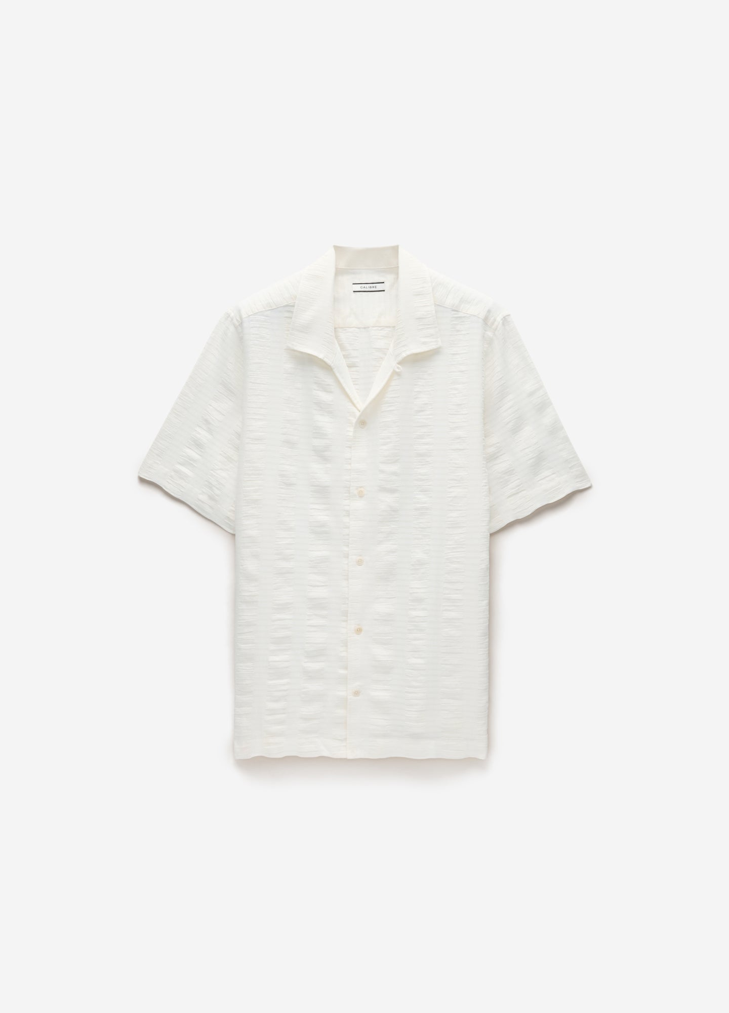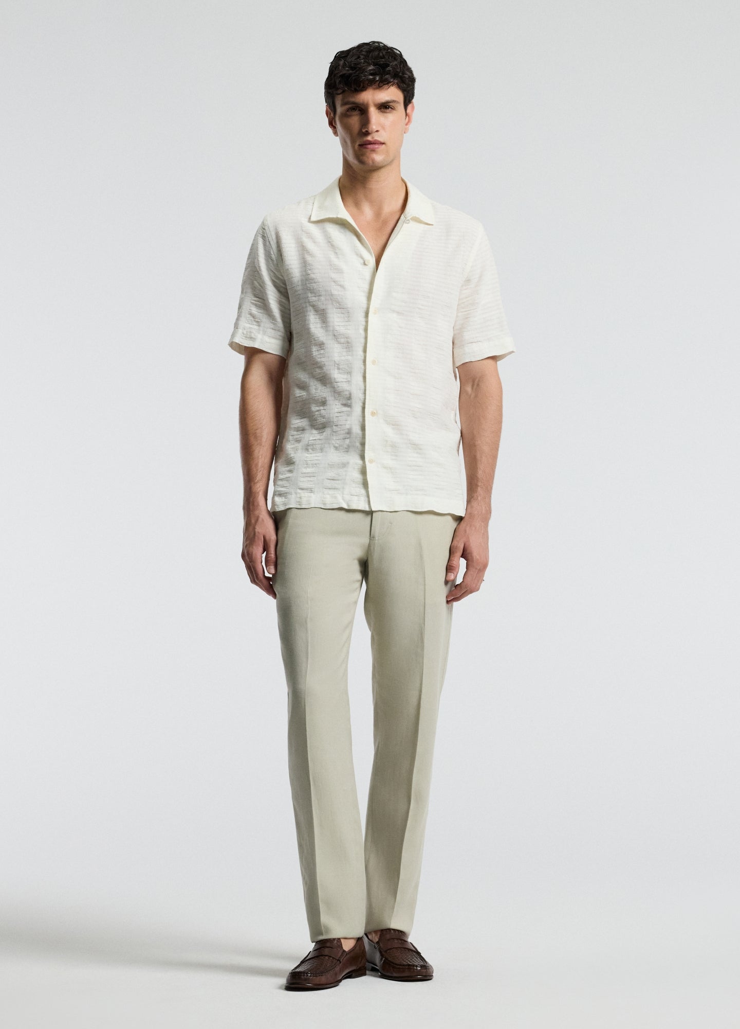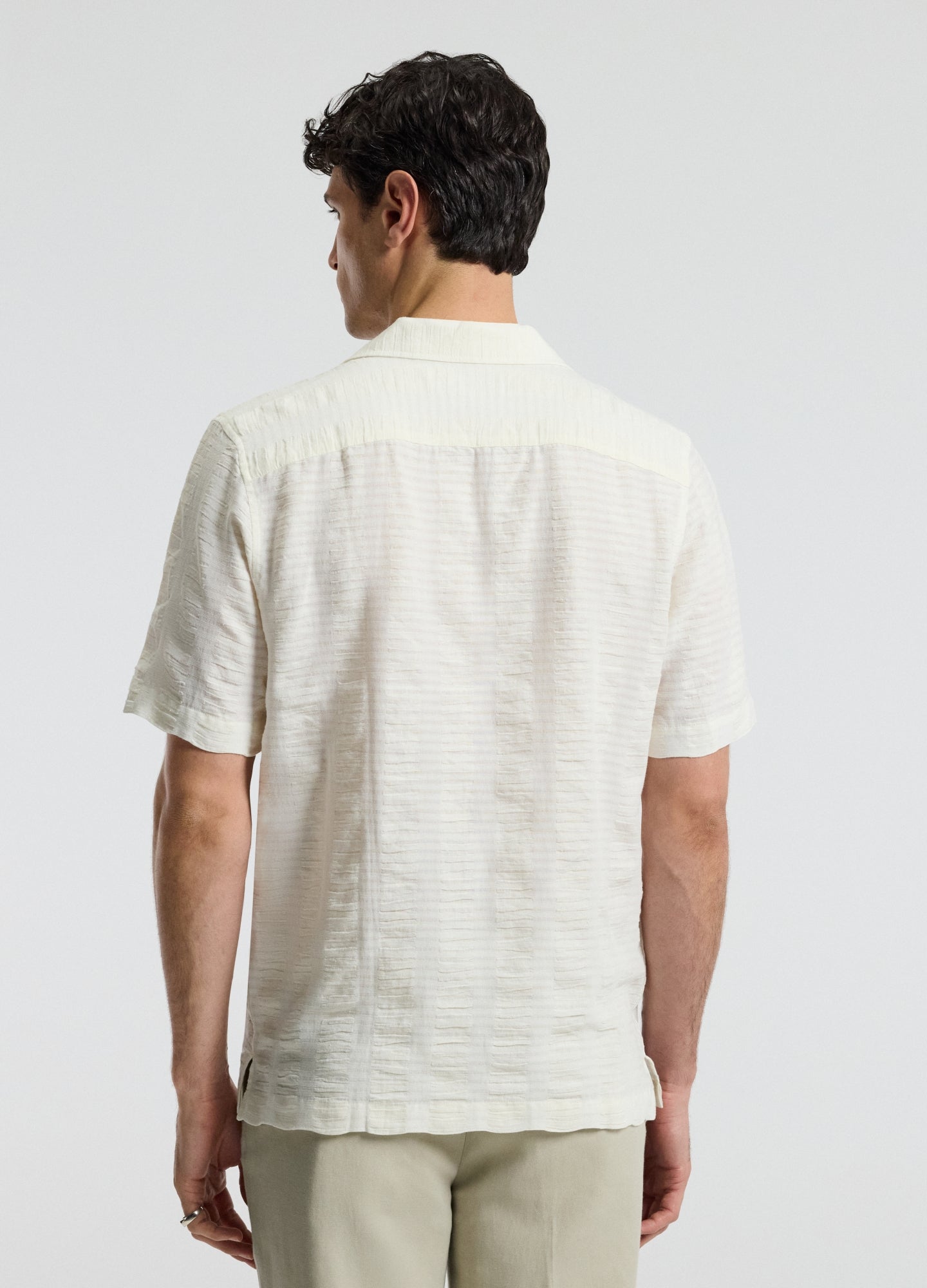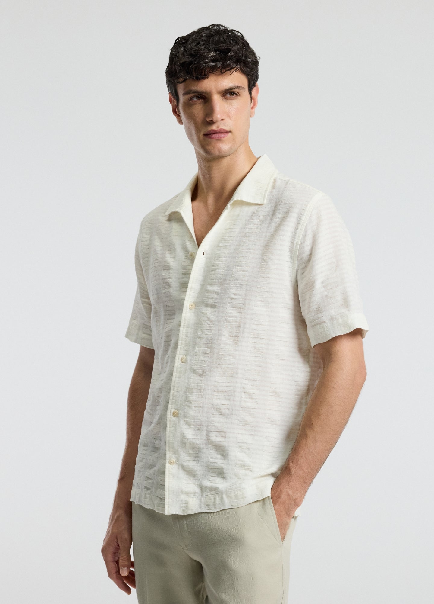 Textured Cotton Linen Short Sleeve Shirt Ivory