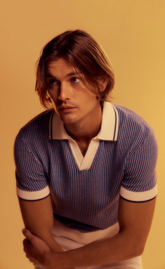 An updated take on crochet, the Textured Stitch Knit Polo takes inspiration from classic 50's resortwear styles. Knitted in a special cotton yarn that adds textural depth to your look, it is a lightweight and breathable style.